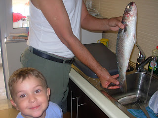We have been eating a lot of fresh sea food. Niko had so much fun seeing this fish move as my dad was trying to clean it.