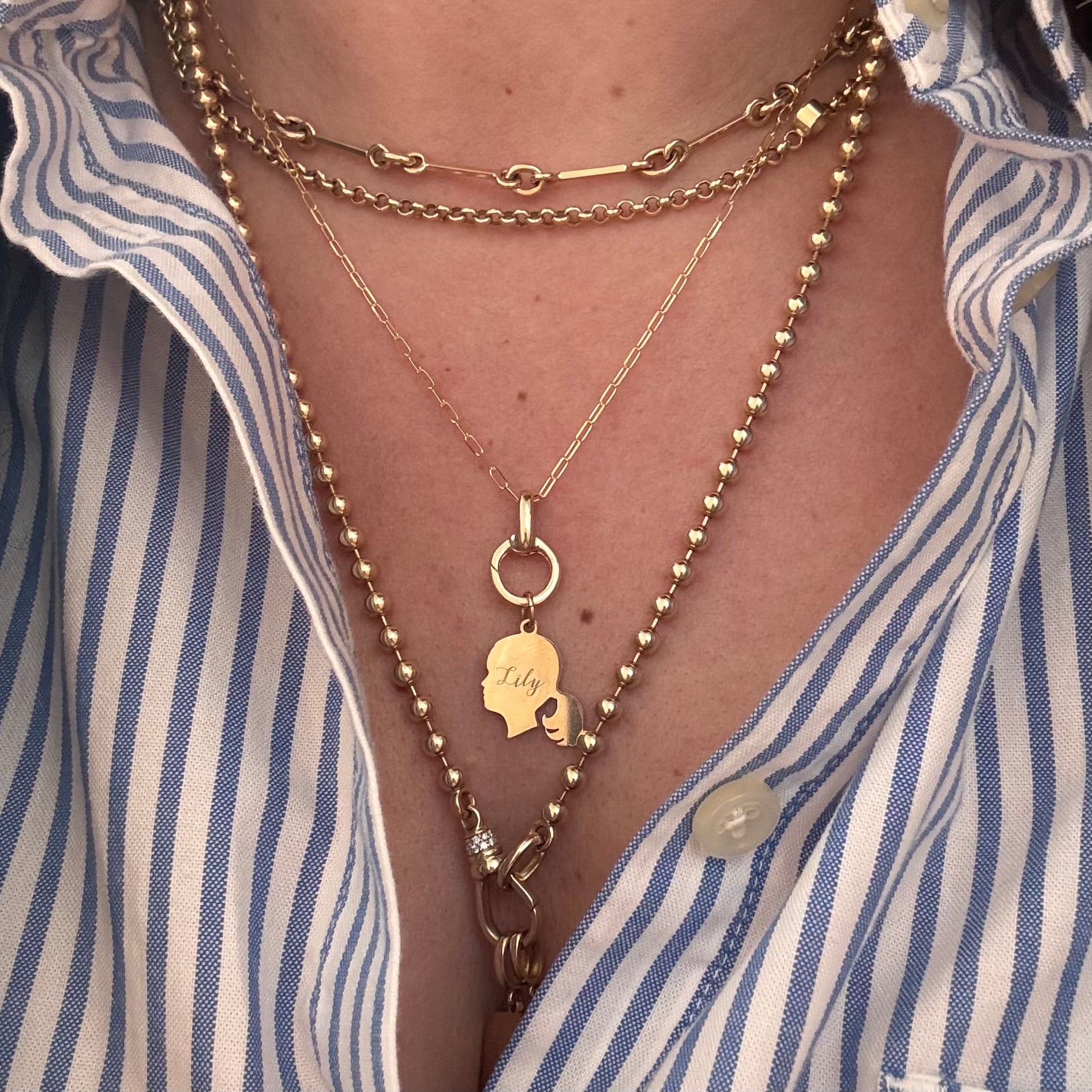 14K Gold Pavé Diamond Silhouette Charm Necklace