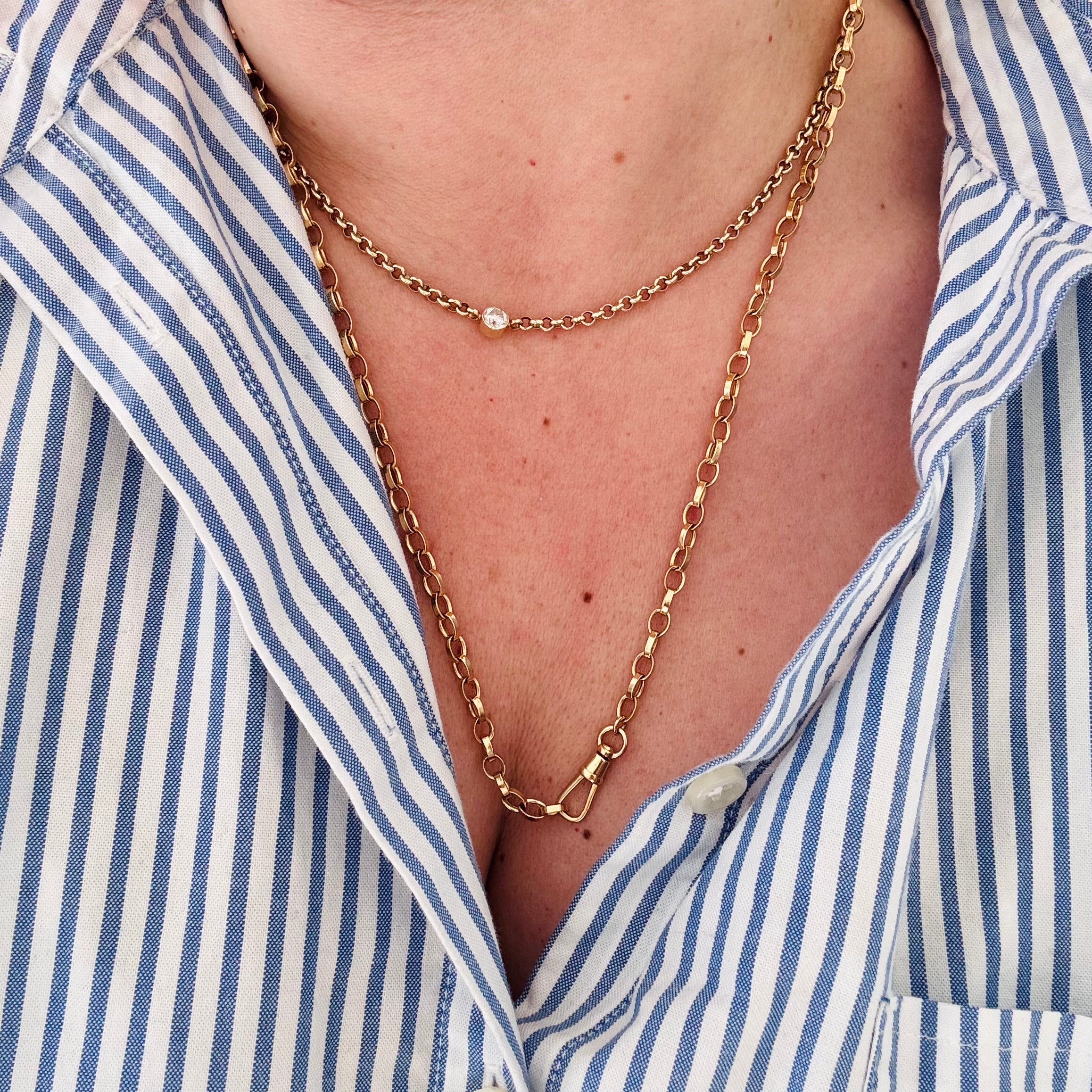 14K Elongated Paper Clip Chain with Invisible Clasp/Charm Holder