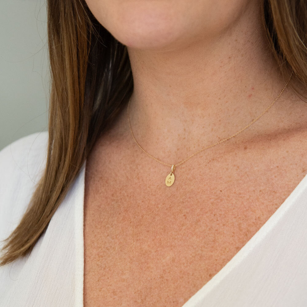 14K Gold Pavé Diamond Initial Medallion Necklace