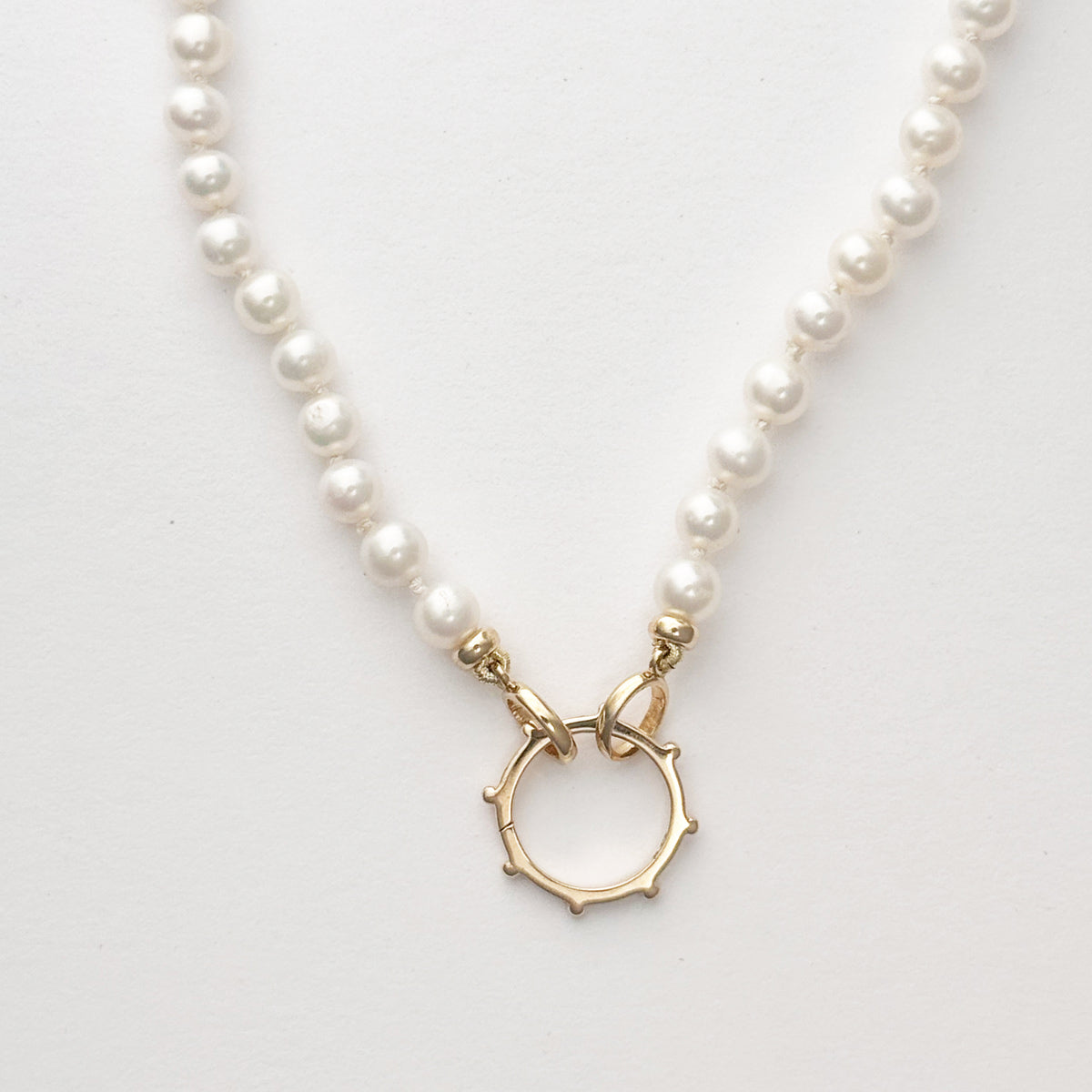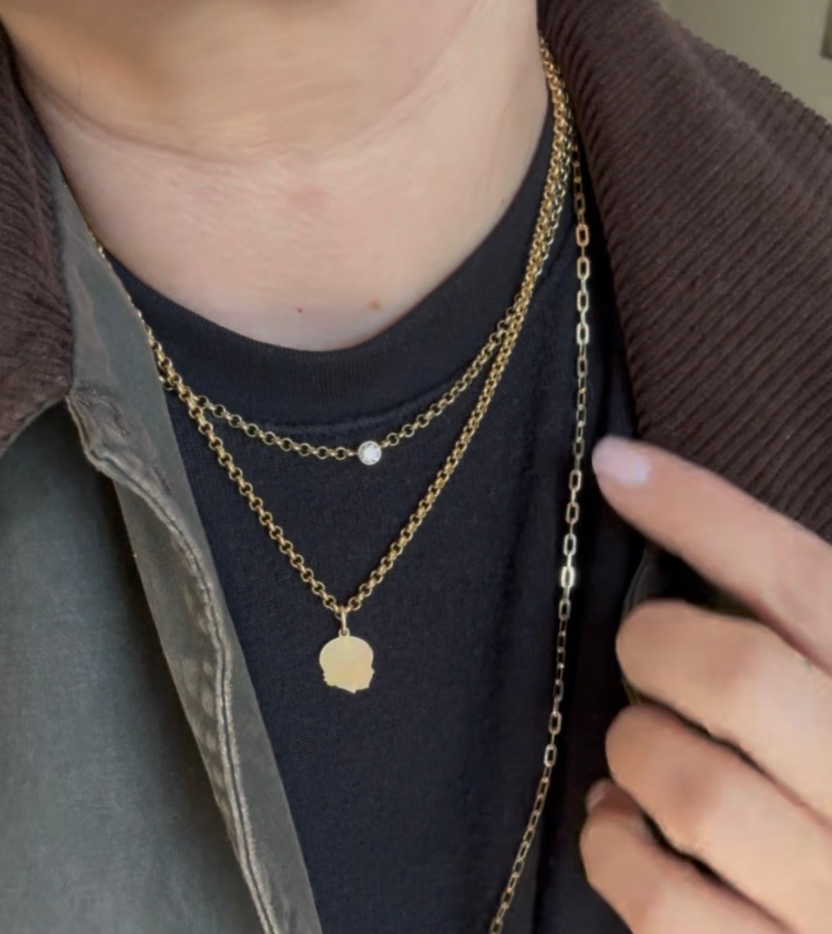 Our elegant charm holders allow you to add on to your Vana Chupp Studio necklaces. Use them with our gold paper clip chain necklaces or bracelets. Although a simple accessory to your jewelry collection, each charm holder is crafted with the finest 14K yellow gold, and each connecting jumpring is perfectly set with sparkling diamonds. While browsing our collection, remember that our diamond jumprings require in-house assembly and cannot ship without a charm or pendant.