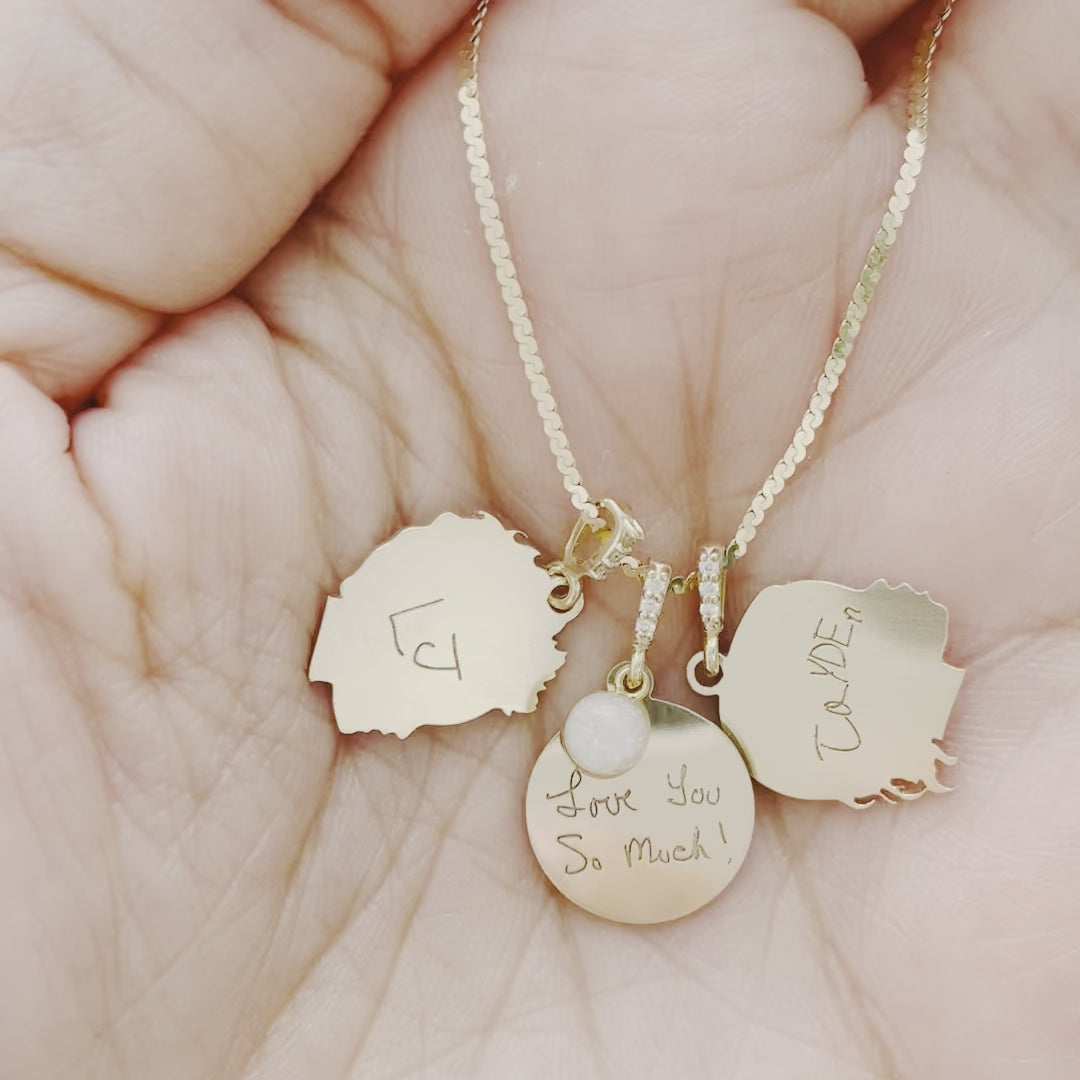 To customize any of our products, start by filling out the order form above. For silhouette portraits, select the color of your silhouette/s, size, framing (optional), orientation and personalization (name or any other text you may want underneath the silhouette/s). For our silhouette jewelry, make select the metal, number of charms for your piece and upload your photos right on the order form.
