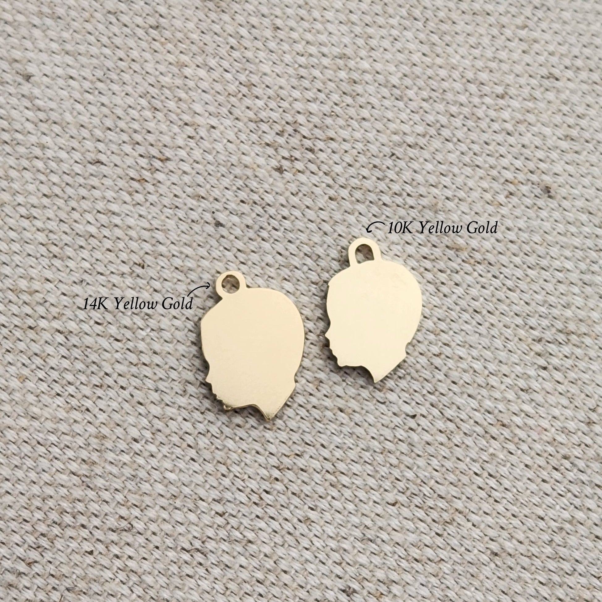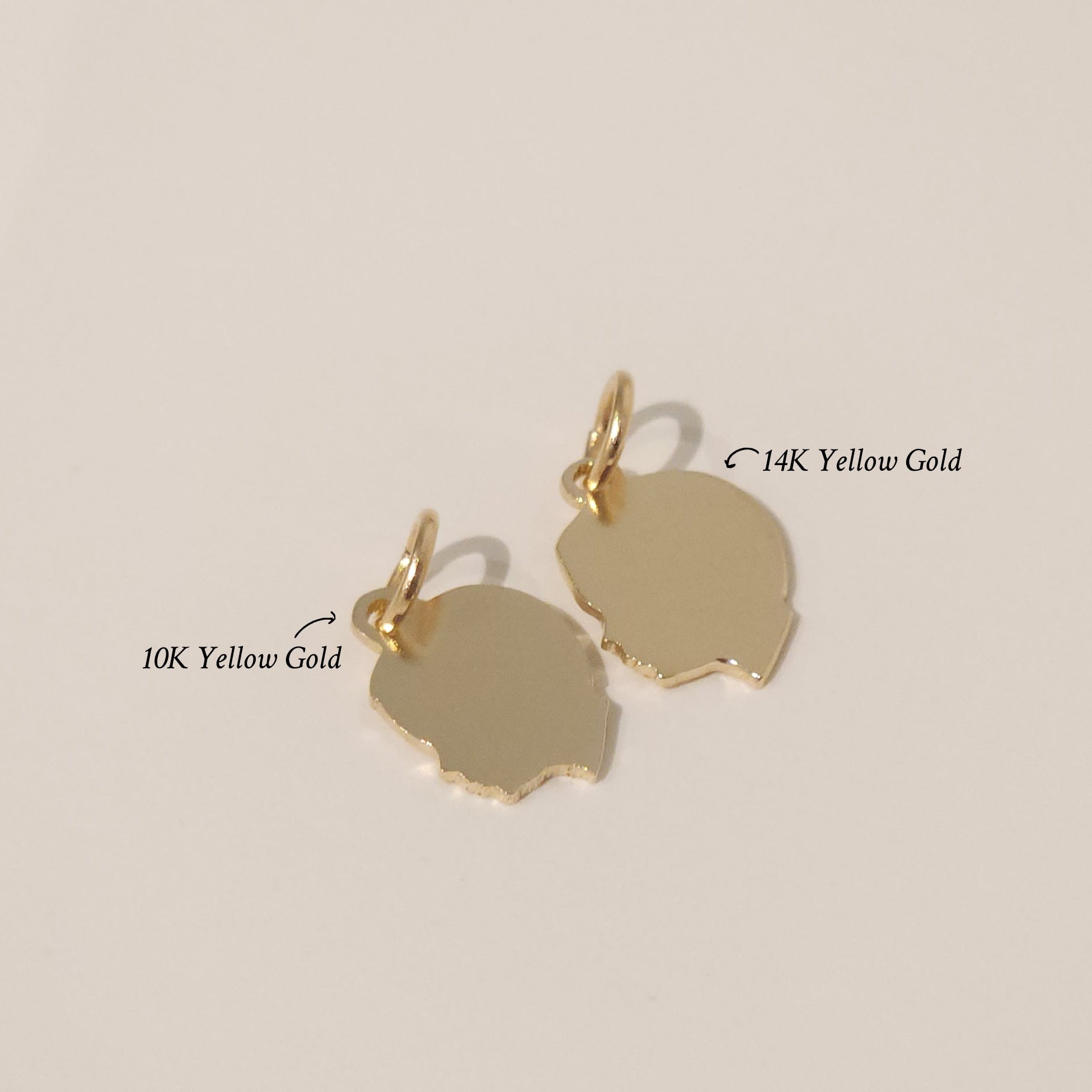 Since none of our charms are marked with a karat stamp, the 10K gold charms will feature a slightly different loop design while still maintaining visual continuity. This is a subtle difference and designed to integrate seamlessly with existing charms.