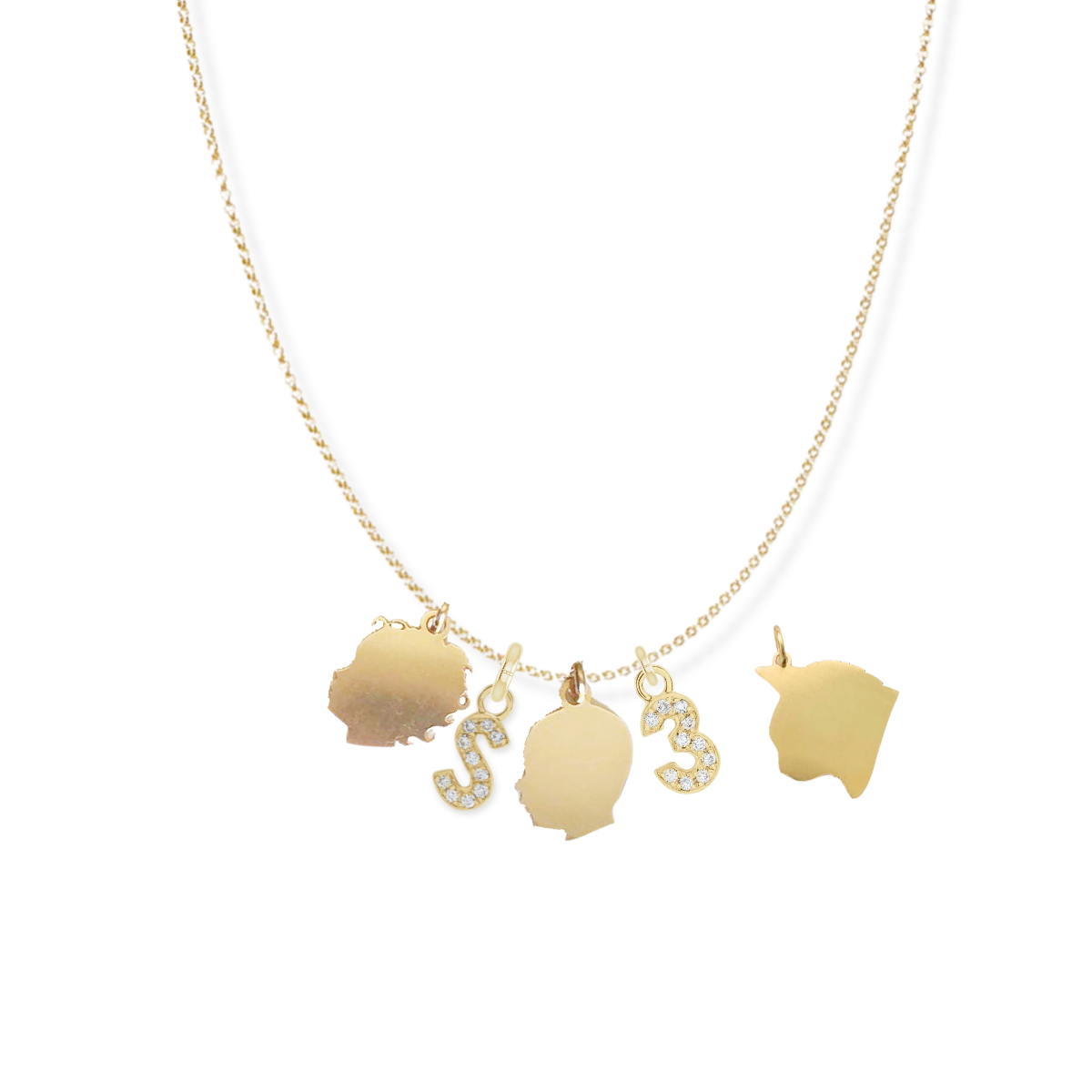 If you have one child, pet, etc, you need to select 1 Custom silhouette. For a family of four (dad, mom and two kids) you would need to select 4 Custom silhouettes. Each subject requires its own custom silhouette to be drawn. That said, in some products like the classic charm necklaces, we only charge a $20 for the first custom silhouette, and waive the fee for additional silhouettes.