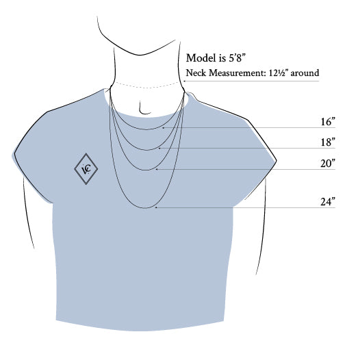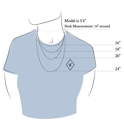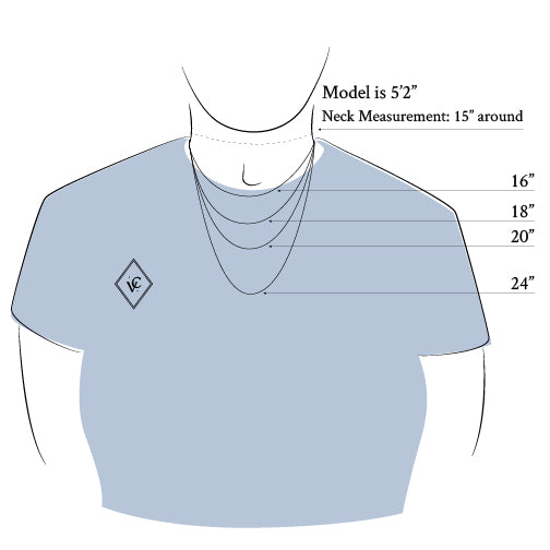 Whether you're shopping for yourself or a gift for a loved one, we want you to feel confident with the length of necklace that you order! We offer a variety of styles and lengths and have developed this guide to help you measure or estimate the best length and weight to suit your style.